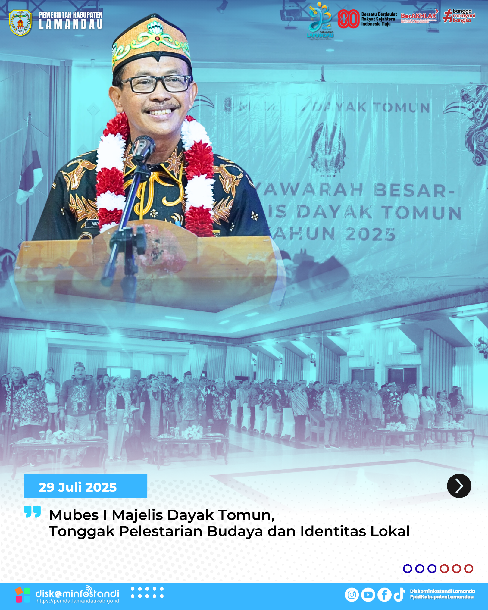 Selaras dengan semboyan Kabupaten Lamandau Bahaum Bakuba, yang mengandung makna selalu bermusyawarah tanpa membedakan latar belakang, Wakil Bupati mengajak seluruh elemen masyarakat untuk menjadikan Majelis Dayak Tomun sebagai wadah inklusif. Tidak hanya menjaga budaya leluhur, tetapi juga menjembatani dialog lintas budaya dan antar generasi.