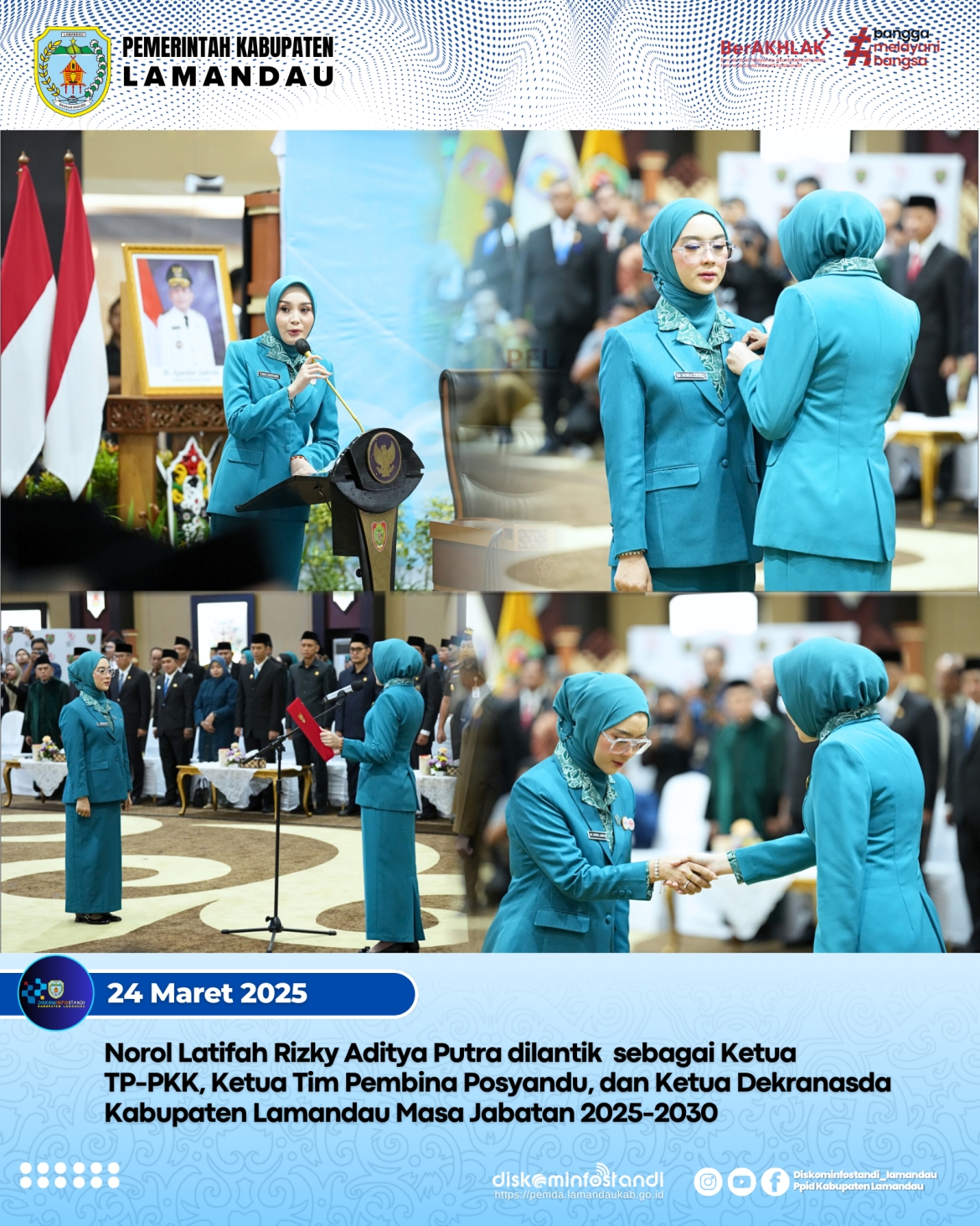 Palangka Raya – Usai pelantikan Bupati dan Wakil Bupati Lamandau, juga dilaksanakan pelantikan Norol Latifah Rizky Aditya Putra, sebagai Ketua TP-PKK, Ketua Tim Pembina Posyandu, dan Ketua Dekranasda Kabupaten Lamandau Masa Jabatan 2025-2030, di Aula Jayang Tingang Kantor Gubernur Kalimantan Tengah, Senin (24/3).