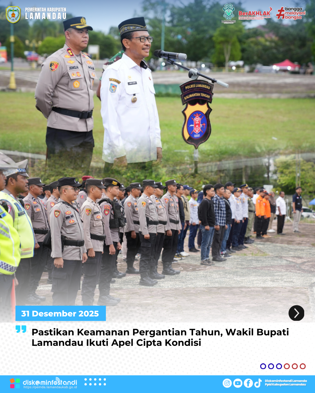 Nanga Bulik – Wakil Bupati Lamandau, Abdul Hamid, bersama Forum Koordinasi Pimpinan Daerah (Forkopimda), Sekretaris Daerah, serta kepala perangkat daerah terkait melaksanakan Apel Gabungan Cipta Kondisi dalam rangka pengamanan malam pergantian Tahun Baru 2026.