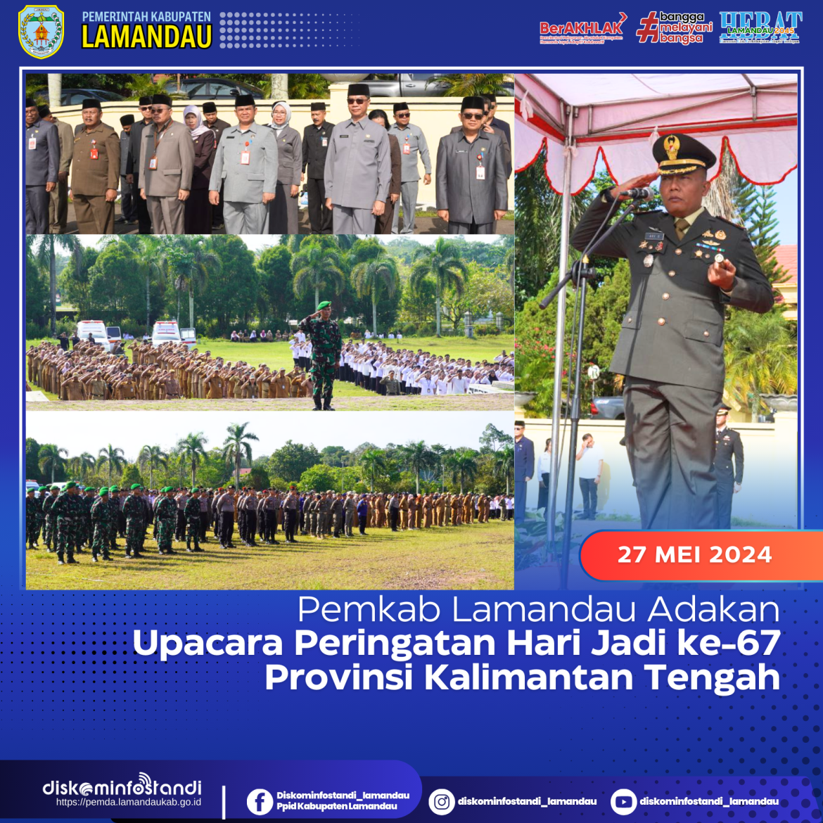 Nanga Bulik – Pemerintah Kabupaten Lamandau mengadakan Upacara Peringatan Hari Jadi ke-67 Provinsi Kalimantan Tengah, di halaman Kantor Bupati Lamandau, Senin (27/5).
