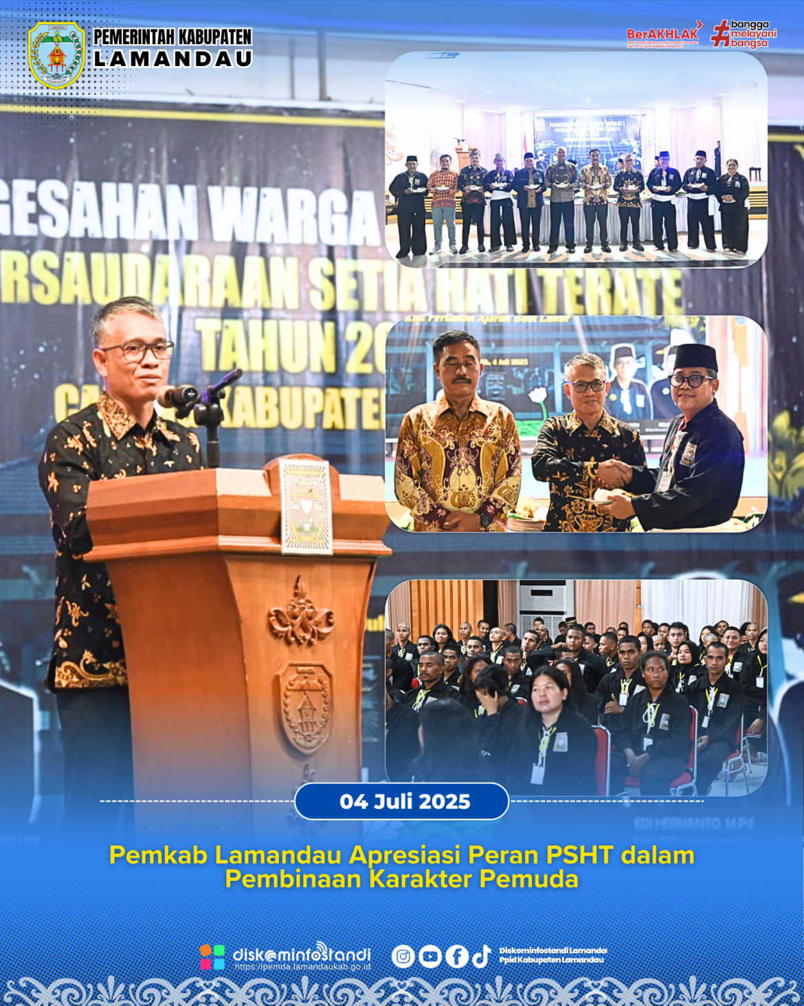 Nanga Bulik – Melalui Sekretaris Daerah Kabupaten Lamandau, Muhamad Irwansyah, Bupati Lamandau Rizky Aditya Putra menyampaikan dukungannya terhadap pelestarian budaya dan penguatan karakter generasi muda pada prosesi pengesahan warga tingkat I Persaudaraan Setia Hati Terate (PSHT) Cabang Lamandau, yang digelar di Gedung GPU Lantang Torang, Jumat (04/07).