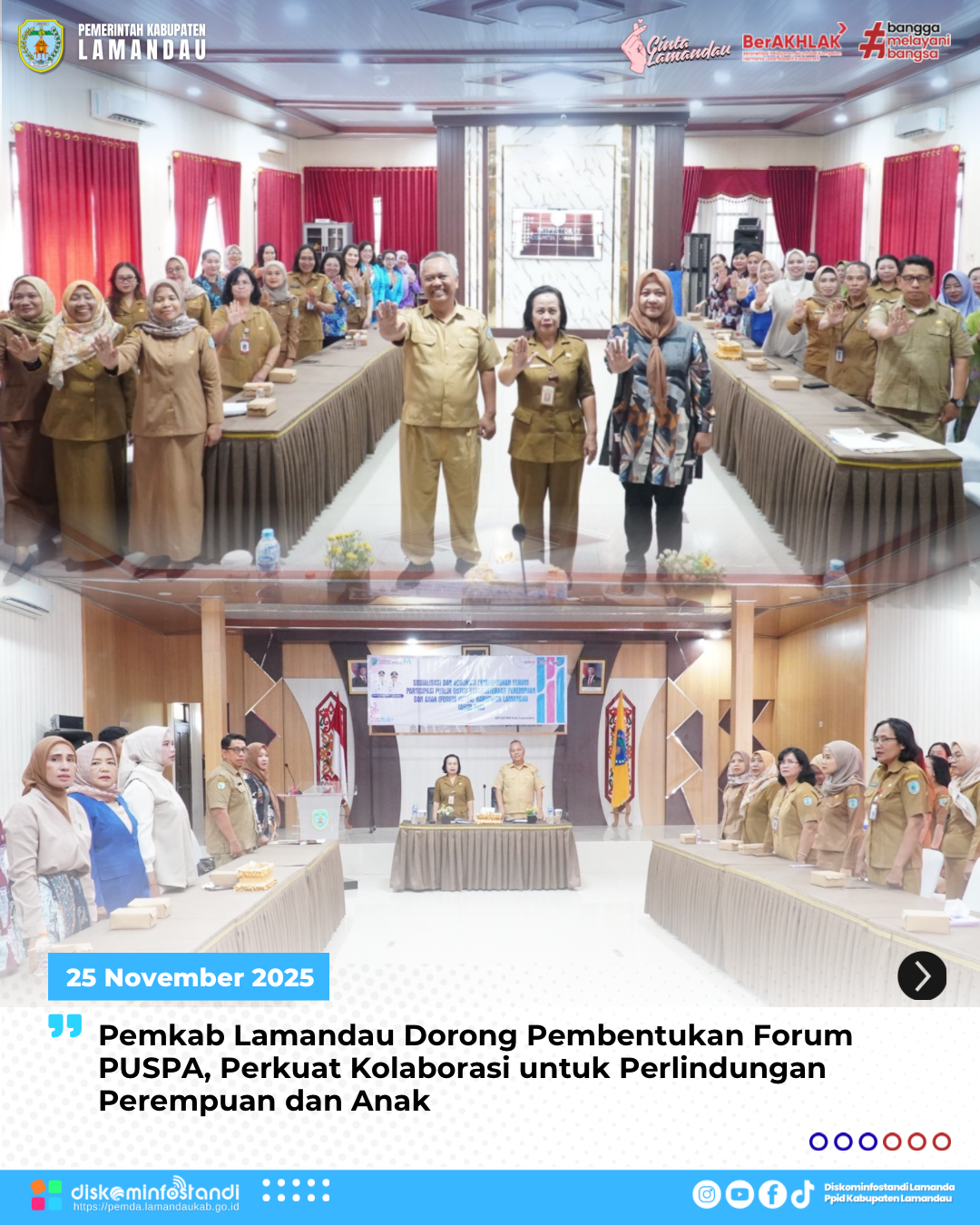 Sementara itu, Kepala Dinas P3AP2KB Lamandau, Alvian, menjelaskan bahwa Forum PUSPA dibentuk sebagai ruang kolaborasi untuk menyatukan persepsi dalam menangani berbagai persoalan yang masih dihadapi perempuan dan anak. Isu-isu seperti kekerasan, perkawinan anak, putus sekolah, hingga eksploitasi menjadi fokus utama yang harus ditangani secara terpadu.