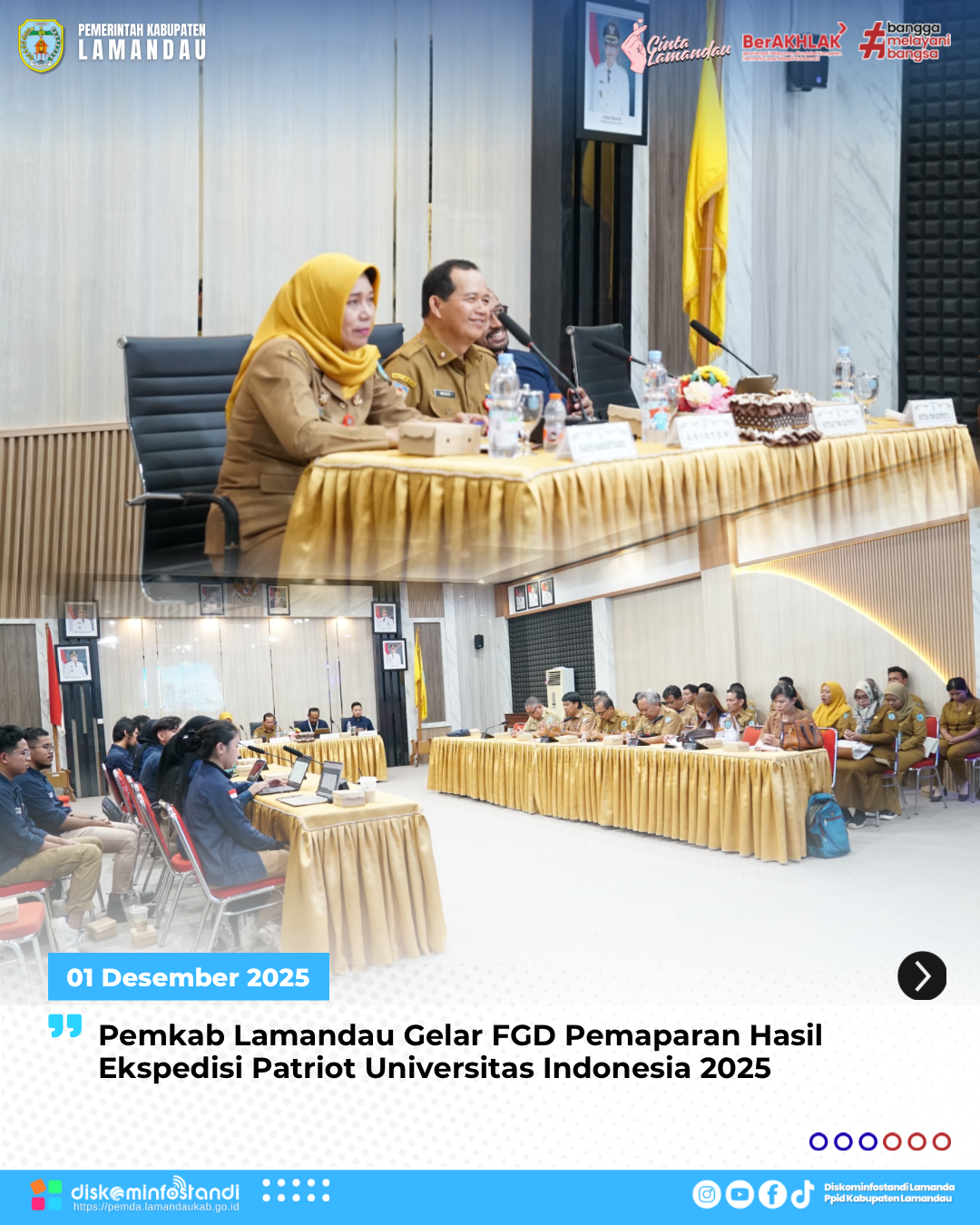 Nanga Bulik — Pemerintah Kabupaten Lamandau menyelenggarakan Focus Group Discussion (FGD) pemaparan hasil pengumpulan data Program Ekspedisi Patriot Universitas Indonesia Tahun 2025, di aula Setda Lamandau, Senin (1/12).