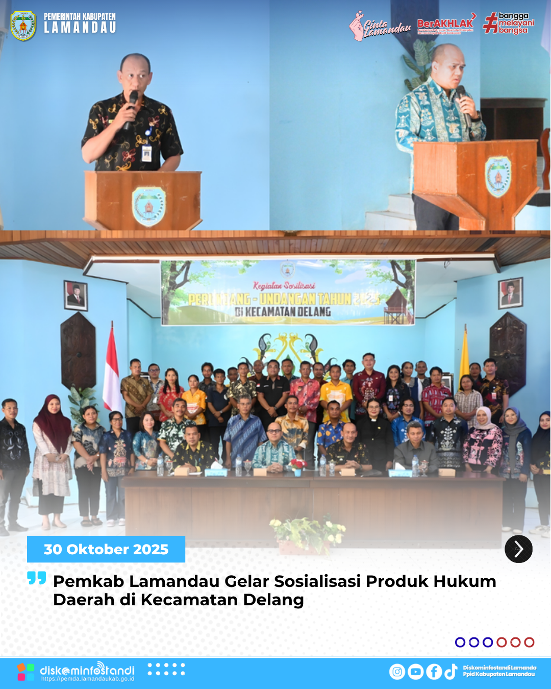 Delang – Pemerintah Kabupaten Lamandau melalui Bagian Hukum Sekretariat Daerah menggelar kegiatan Sosialisasi Produk Hukum Daerah di Aula Kantor Kecamatan Delang, Kamis (30/10/2025).