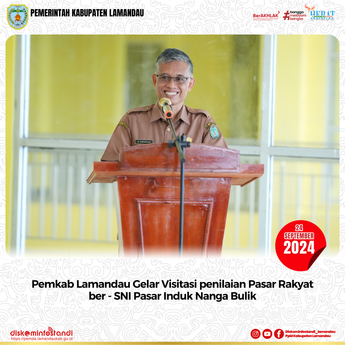 Nanga Bulik – Pj Bupati Lamandau, Said Salim, diwakili oleh Sekretaris Daerah Muhamad Irwansyah membuka kegiatan Visitasi penilaian Pasar Rakyat ber – SNI (Standar Nasional Indonesia) Pasar Induk Nanga Bulik, Selasa (24/9).