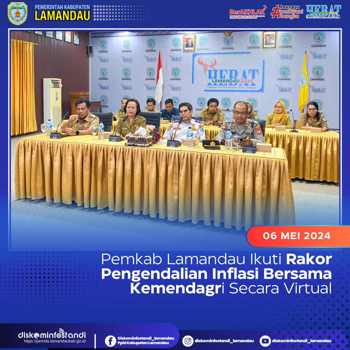 Nanga Bulik – Pemerintah Kabupaten (Pemkab) Lamandau mengikuti Zoom Meeting Rapat Koordinasi (Rakor) Pengendalian Inflasi Tahun 2024 yang diselenggarakan oleh Kementerian Dalam Negeri Republik Indonesia, Senin (06/05/2024) di Aula Sekretariat Daerah Kabupaten Lamandau.