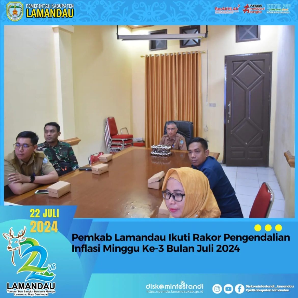Nanga Bulik – Pemerintah Kabupaten Lamandau yang diwakili oleh Sekretaris Daerah Kabupaten Lamandau Muhammad Irwansyah mengikuti Rapat Koordinasi Pengendalian Inflasi yang merupakan agenda rutin mingguan dari Kemendagri sesuai arahan Presiden RI Joko Widodo secara virtual, di ruang rapat Bupati Lamandau, Senin (22/07).