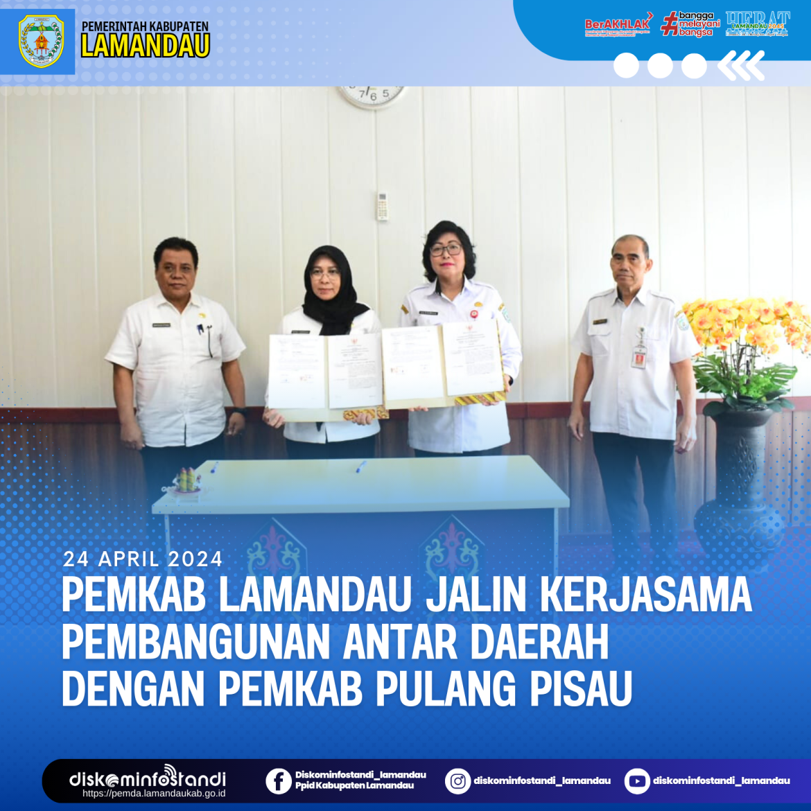 Palangka Raya – Pemerintah Kabupaten (Pemkab) Lamandau menjalin kerjasama dengan Pemerintah Kabupaten Pulang Pisau terkait kerjasama pembangunan antar daerah.