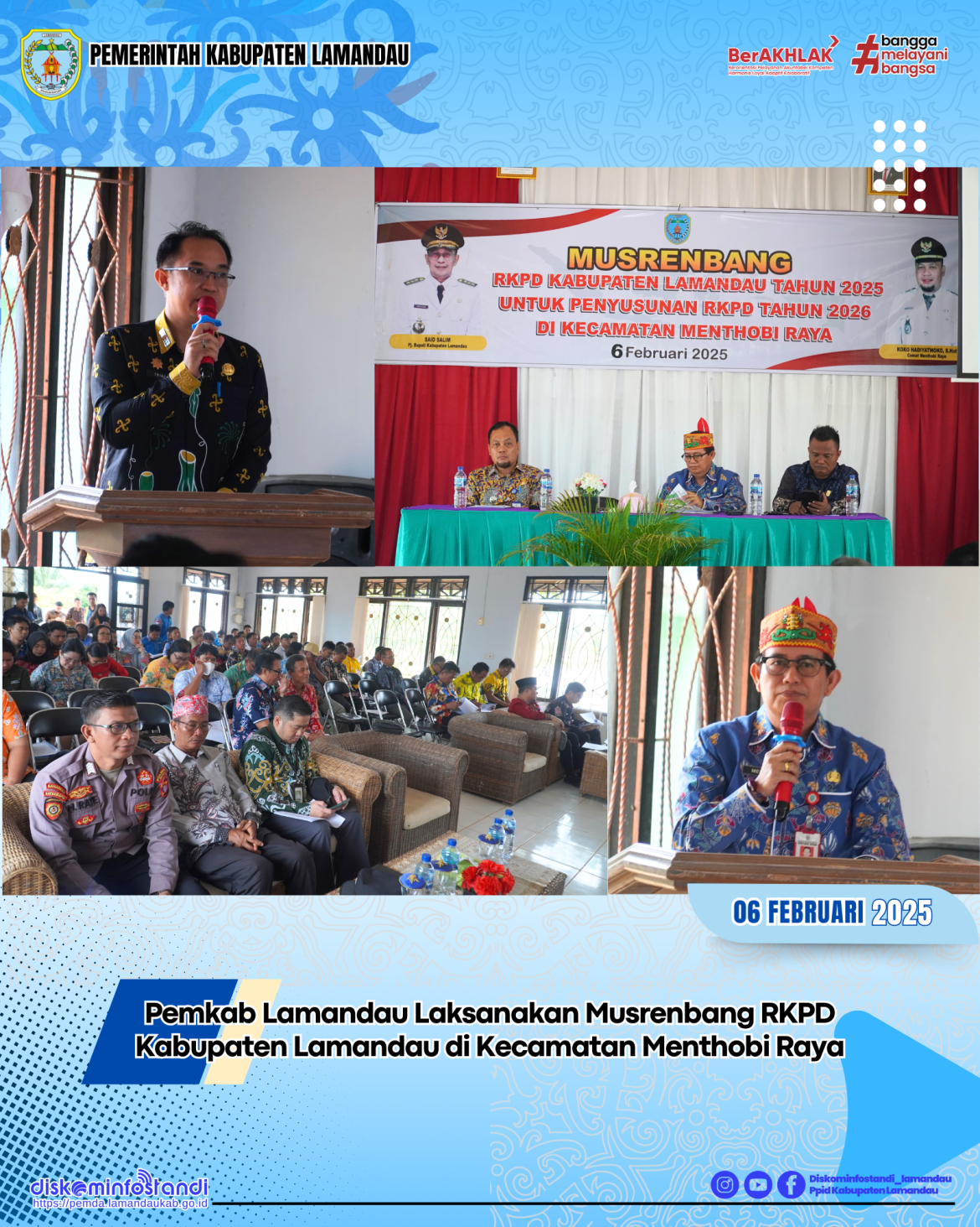 Dalam arahan Pj. Bupati Lamandau yang dibacakan oleh Asisten Pemkesra dikatakan bahwa Musrenbang RKPD Tahun 2025 dilaksanakan sebagai dasar untuk penyusunan RKPD Tahun 2026 yang mana akan membahas rencana kerja perangkat daerah pembangunan disetiap Kecamatan di Kabupaten Lamandau.