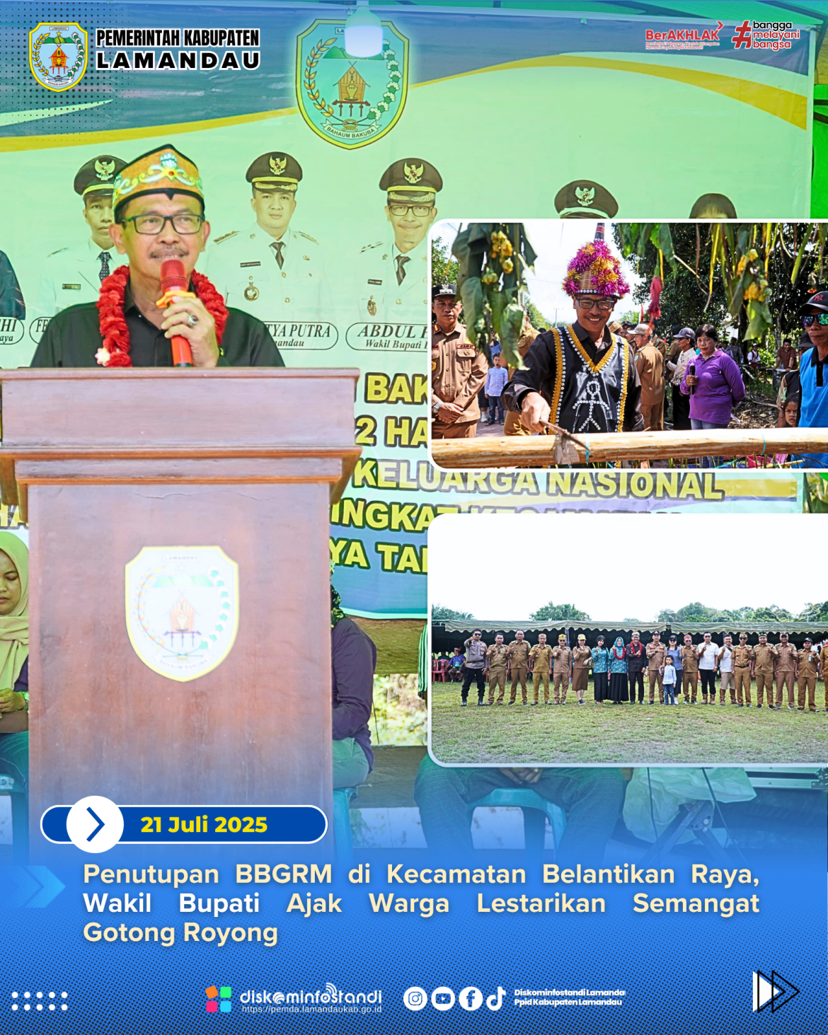 Tangga Batu – Pemerintah Kabupaten Lamandau secara resmi menutup rangkaian kegiatan Bulan Bhakti Gotong Royong Masyarakat (BBGRM) XXII, Hari Kesatuan Gerak (HKG) PKK ke-53, dan Peringatan Hari Keluarga Nasional (Harganas) ke-32 tingkat Kecamatan Belantikan Raya di Desa Tangga Batu pada Senin (21/07).