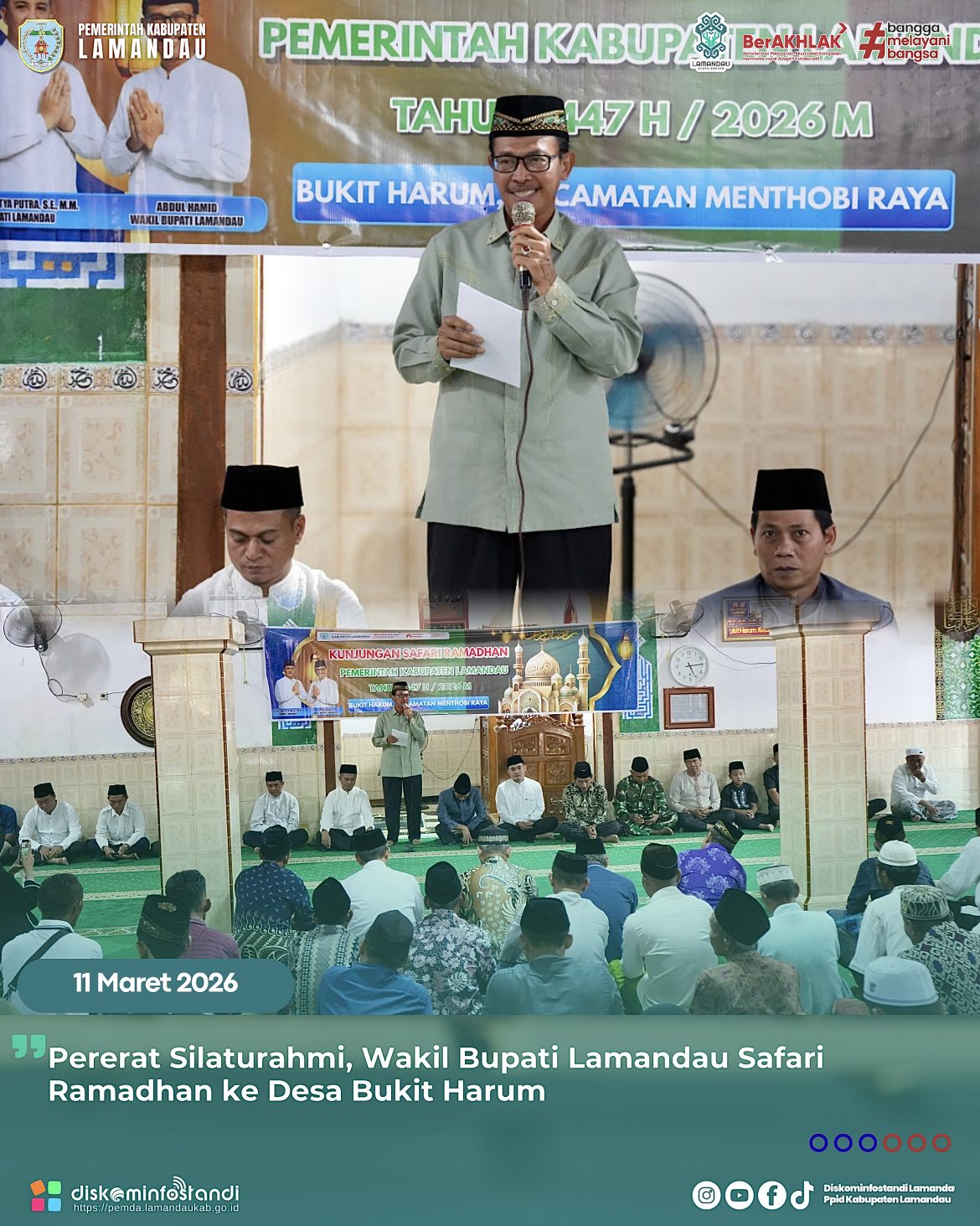Bukit Harum – Dalam rangka mempererat silaturahmi di bulan suci Ramadhan 1447 Hijriah, Wakil Bupati Lamandau, Abdul Hamid bersama jajaran kepala Perangkat Daerah melaksanakan Safari Ramadhan ke Desa Bukit Harum, Kecamatan Menthobi Raya, Rabu (11/3/2026).