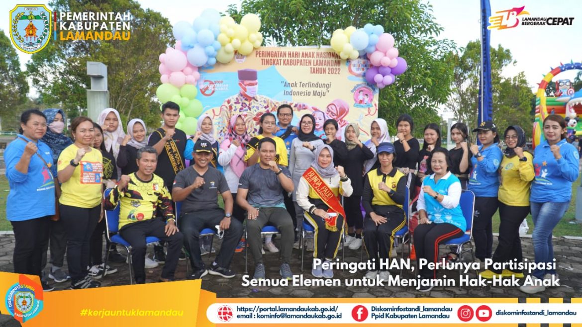 Lamandau Bergerak Cepat (LBC) – Bupati Lamandau Hendra Lesmana didampingi Bunda PAUD Lamandau Ny Rusdianti Hendra Lesmana hadir dalam rangka peringatan Hari Anak Nasional (HAN) Tahun 2022 dengan tema “Anak Terlindungi Indonesia Maju”, yang berpusat di Bundaran Rusa Nanga Bulik, Minggu (24/7).