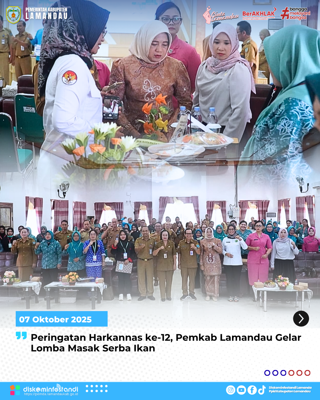 Nanga Bulik – Pemerintah Kabupaten (Pemkab) Lamandau melalui Dinas Pertanian dan Perikanan menggelar peringatan Hari Ikan Nasional (Harkannas) ke-12 yang dirangkaikan dengan Lomba Masak Serba Ikan tingkat kabupaten tahun 2025, bertempat di Aula BPKPD Lamandau, Selasa (7/10/2025).