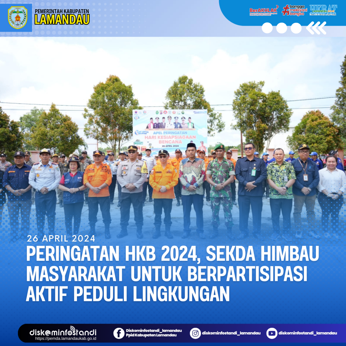 Hal tersebut disampaikan Sekda usai memimpin apel peringatan Hari Kesiapsiagaan Bencana (HKB) 2024, Jum’at (26/4/2024) di Halaman Kantor BPBD Kabupaten Lamandau.