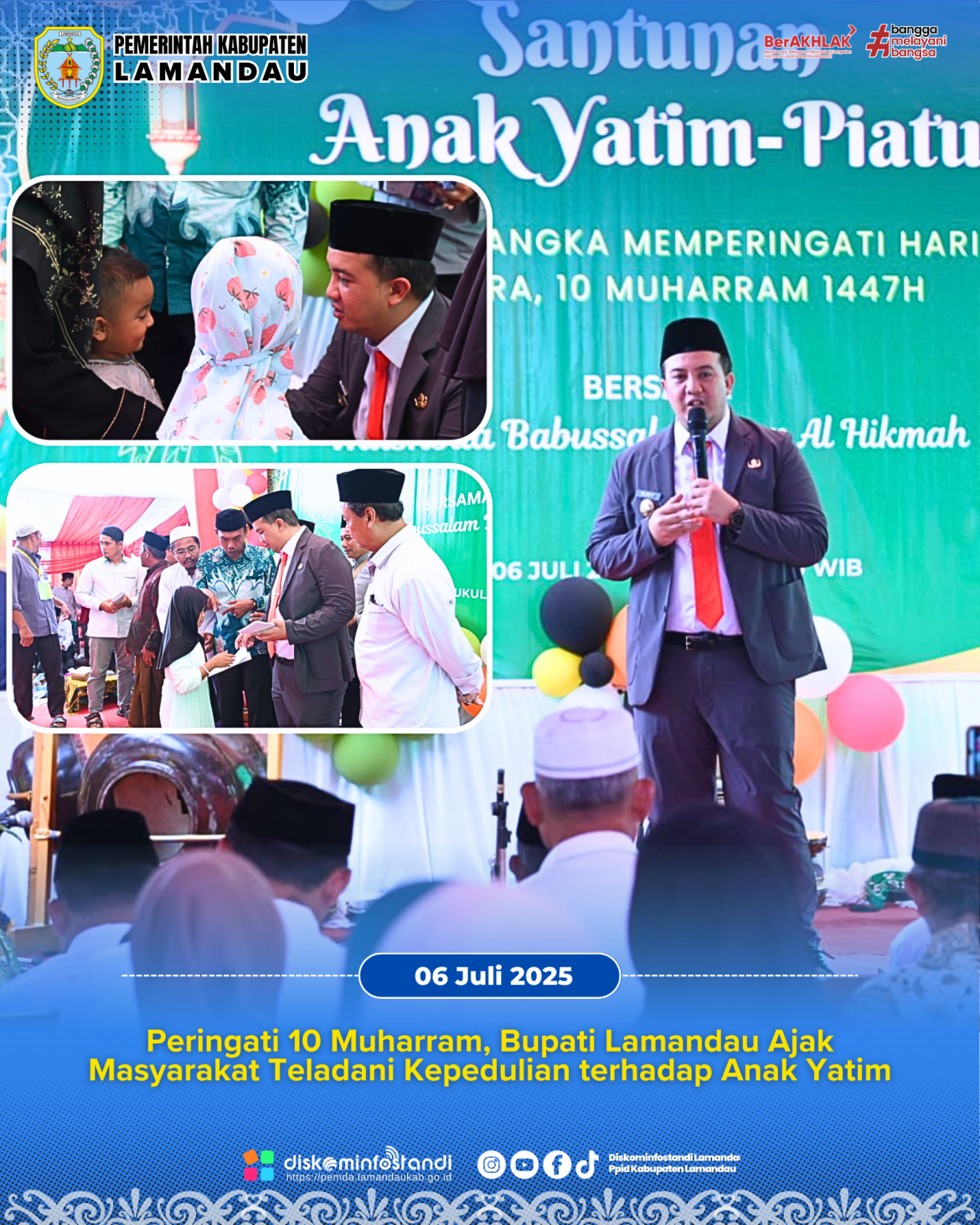 Dalam sambutannya, Bupati menekankan makna 10 Muharram sebagai momentum untuk meningkatkan kepedulian sosial, Bupati mengajak umat Muslim di Kabupaten Lamandau menjadikan santunan kepada anak yatim sebagai bagian dari gaya hidup dan bentuk nyata meneladani Rasulullah SAW.