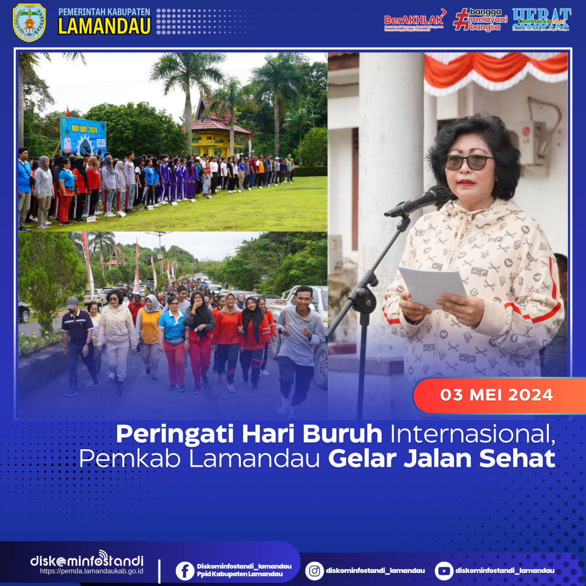 Untuk mengingat perjuangan tersebut, Pj Bupati Lamandau Lilis Suriani ikuti jalan sehat, dengan titik kumpul di Halaman Kantor Dinas Tenaga Kerja dan Transmigrasi Kabupaten Lamandau, Jum’at (3/5).