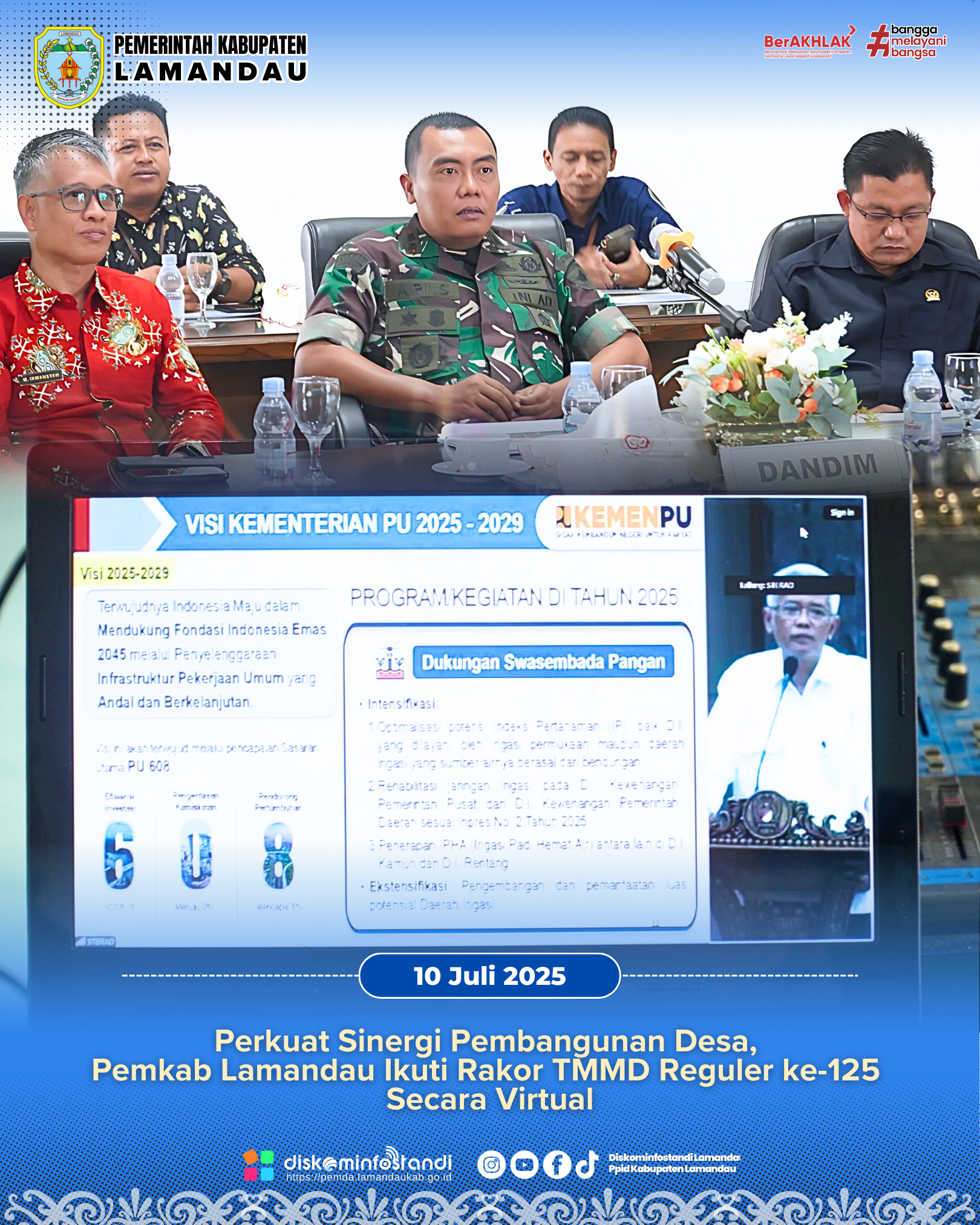 Nanga Bulik– Pemkab Lamandau bersama Kodim 1017/Lamandau, dan jajaran Forum Koordinasi Pimpinan Daerah (Forkopimda) Kabupaten Lamandau mengikuti Rapat Koordinasi (Rakor) virtual persiapan pelaksanaan TNI Manunggal Membangun Desa (TMMD) Reguler ke-125 Tahun 2025, Kamis (10/7).