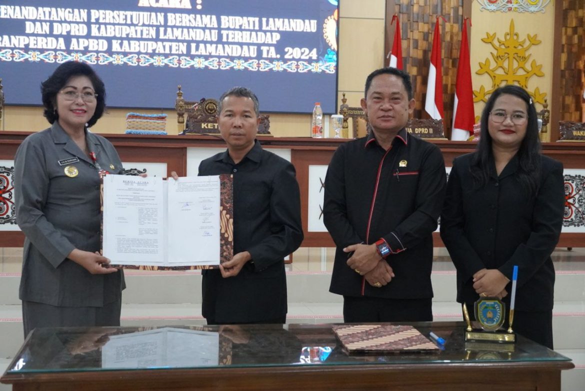 Dalam kesempatan tersebut dilaksanakan penandatanganan berita acara persetujuan bersama Pj Bupati Lamandau dan DPRD Kabupaten Lamandau tentang Ranperda APBD Kabupaten Lamandau TA 2024.