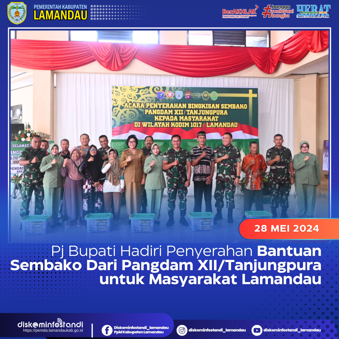 Mayjen TNI Iwan Setiawan mengatakan, Penyerahan secara simbolis ini juga mencerminkan komitmen TNI AD dan Kodim 1017/Lmd Daerah Lamandau dalam mendukung kesejahteraan dan kebutuhan dasar masyarakat di sekitar wilayah desa binaan. Melalui bantuan berupa bingkisan sembako tersebut pihaknya berharap bisa meringankan beban Masyarakat khususnya Kabupaten Lamandau, terutama dalam memenuhi kebutuhan sehari-hari. (Diskominfostandi)