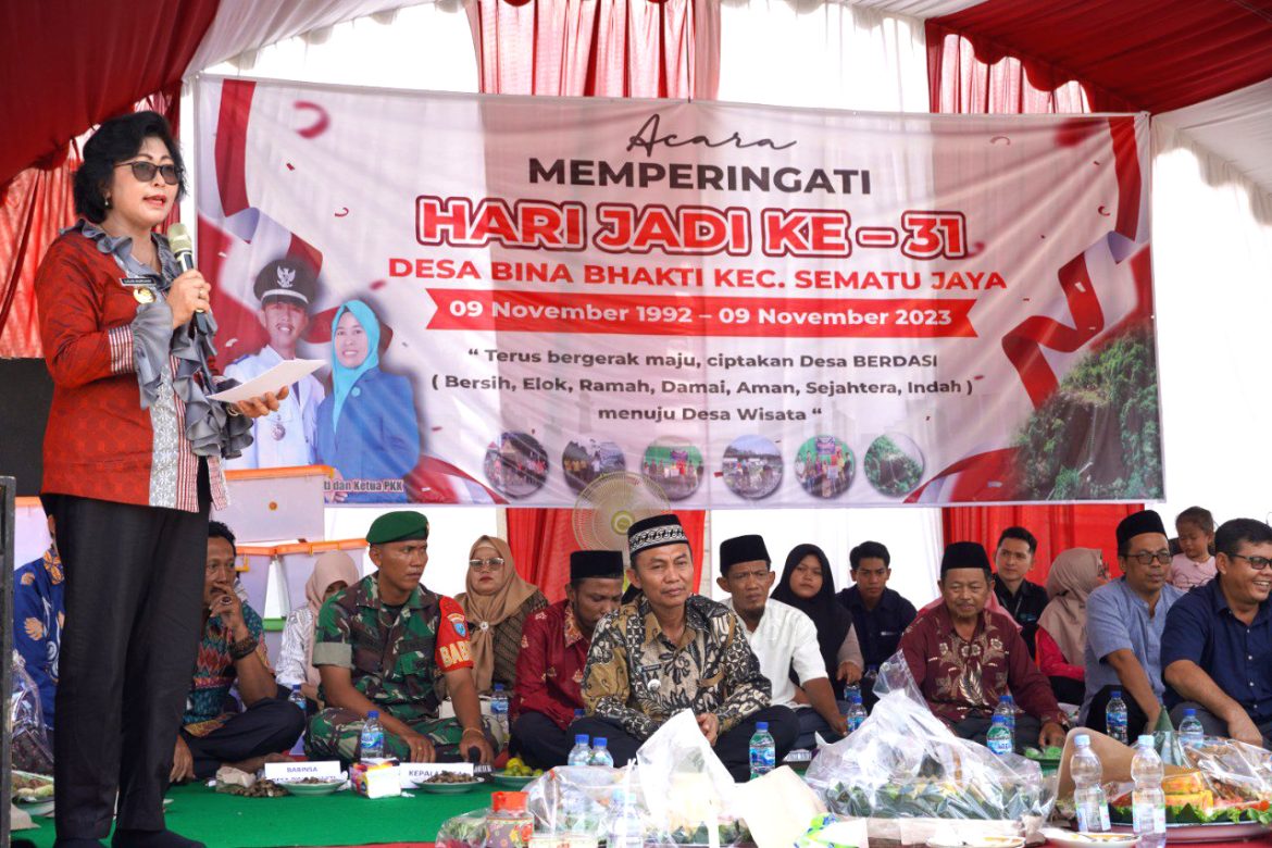 Bina Bhakti – Penjabat (Pj Bupati Lamandau, Lilis Suriani menghadiri acara peringatan hari jadi ke 31 Desa Bina Bhakti Kecamatan Sematu Jaya, Sabtu (11/11/2023) yang digelar di Pasar Bakti Jaya Desa Bina Bhakti.