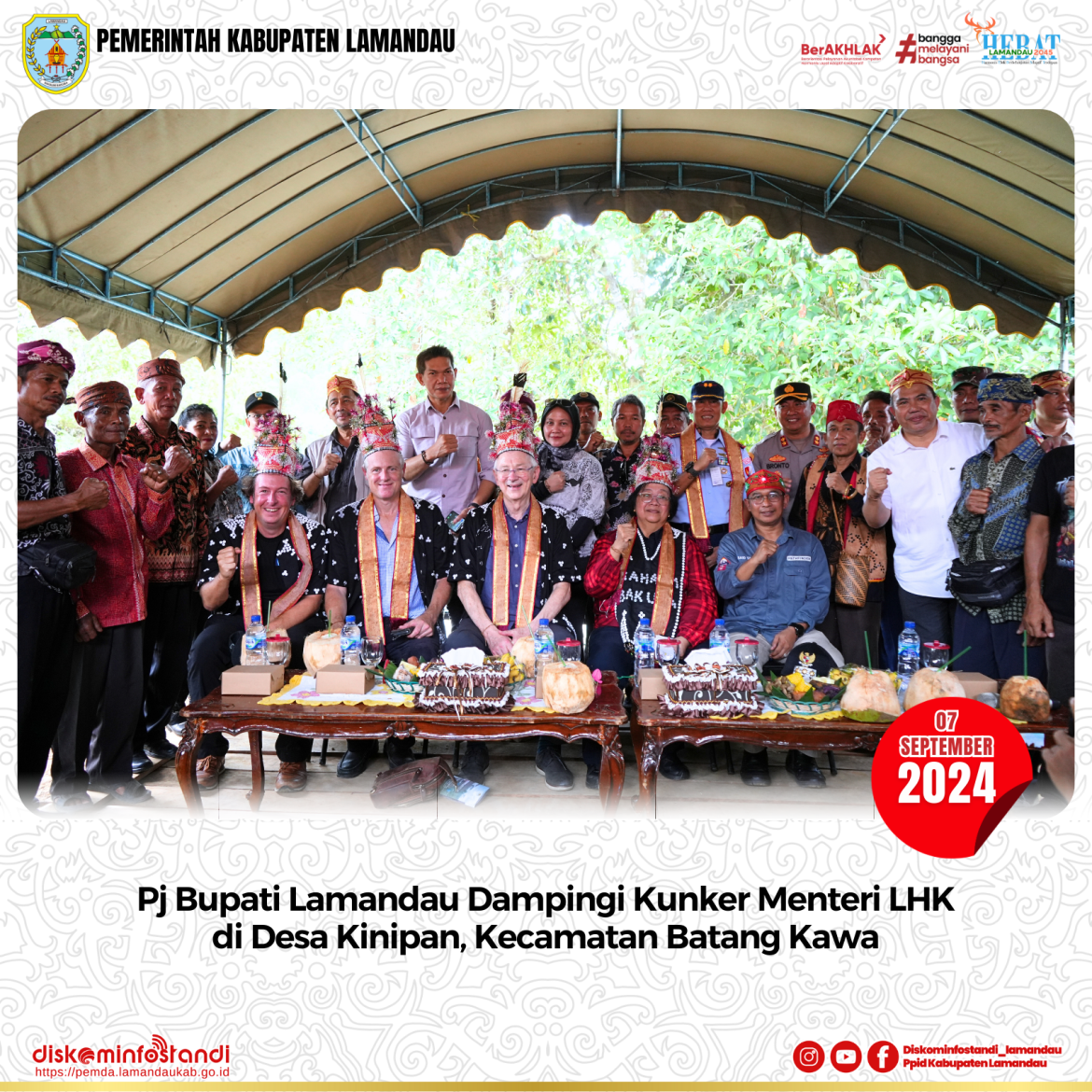 Kinipan – Penjabat (Pj) Bupati Lamandau, Said Salim bersama Forkopimda dan Sekretaris Daerah menyambut sekaligus mendampingi Kunjungan Kerja (Kunker) Menteri Lingkungan Hidup dan Kehutanan (LHK) Republik Indonesia Siti Nurbaya Bakar, Sabtu (7/9) di Desa Kinipan, Kecamatan Batang Kawa.