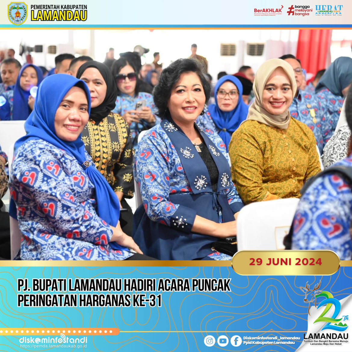 Semarang – Penjabat (Pj) Bupati Lamandau, Lilis Suriani yang didampingi Kepala Dinas P3AP2KB dan Kepala Dinas Kesehatan menghadiri Acara Puncak Peringatan Hari Keluarga Nasional (Harganas) Ke-31 Tahun 2024 yang diselenggarakan oleh Badan Kependudukan dan Keluarga Berencana Nasional (BKKBN), Sabtu (29/06/2024).