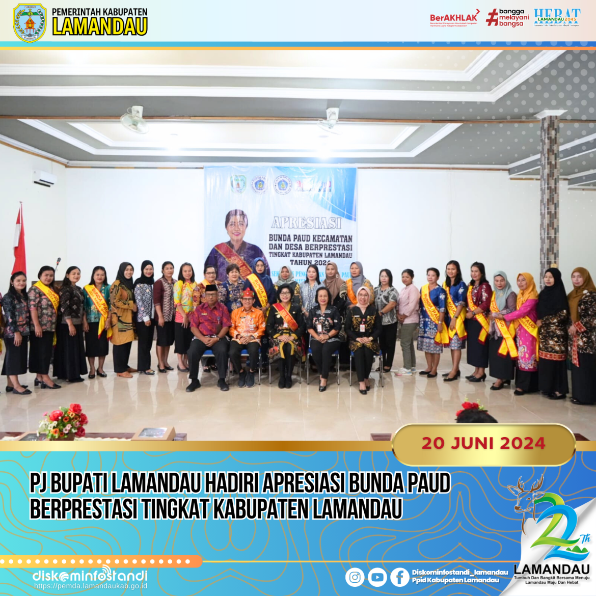 “Melalui apresiasi Bunda PAUD ini saya mengajak semua pihak dan para Bunda PAUD di Kabupaten Lamandau terus berkreasi dan berinovasi tentang pola pembinaan dan penyelenggaraan PAUD yang paling efektif dan efisien di wilayah masing-masing”, tambah Pj Bupati.