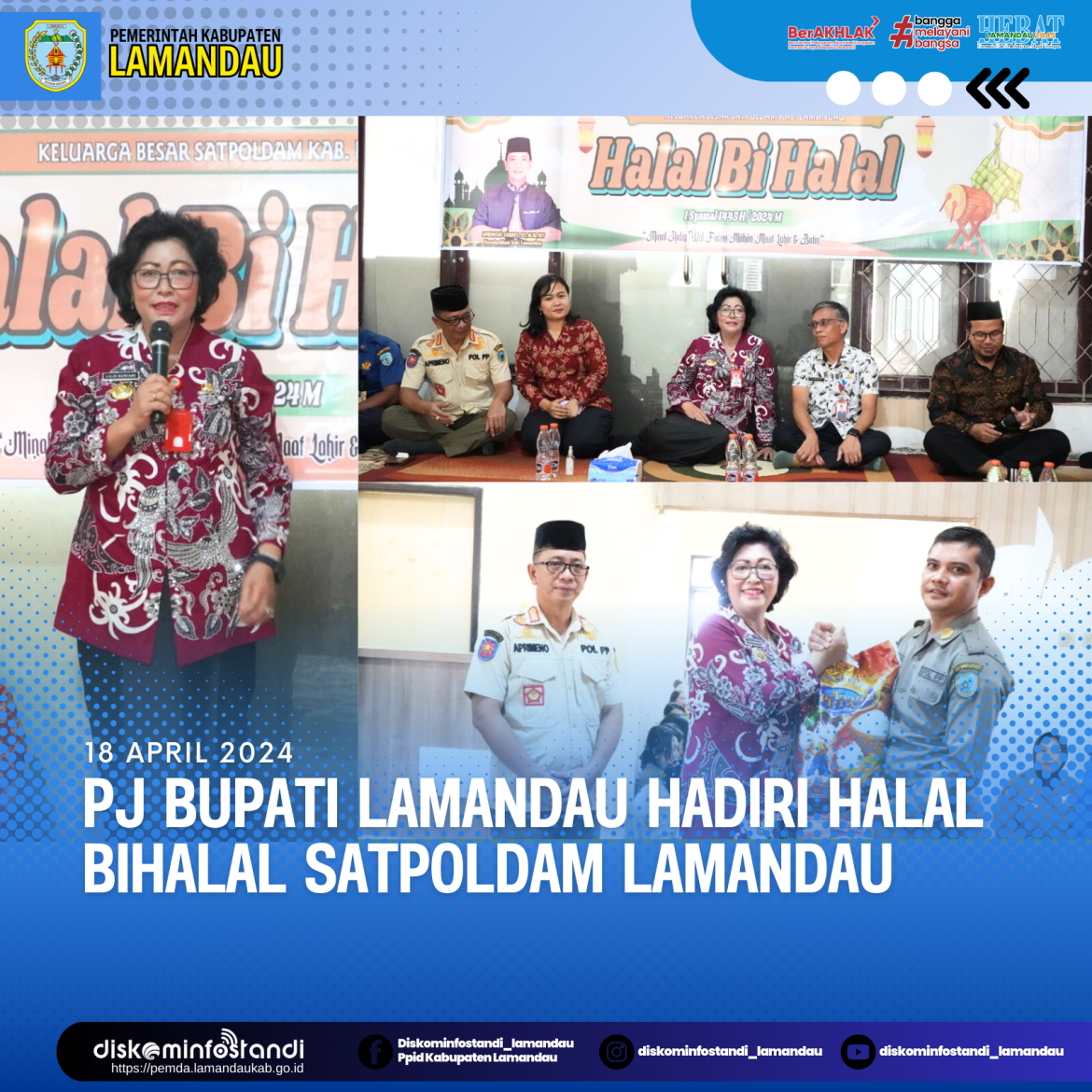 Nanga Bulik – Masih dalam suasana lebaran  Idul Fitri 1445 H, Pj Bupati Lamandau Lilis Suriani menghadiri halal bi halal bersama jajaran ASN Satpoldam, di kantor Satpoldam Lamandau, Kamis (18/4).