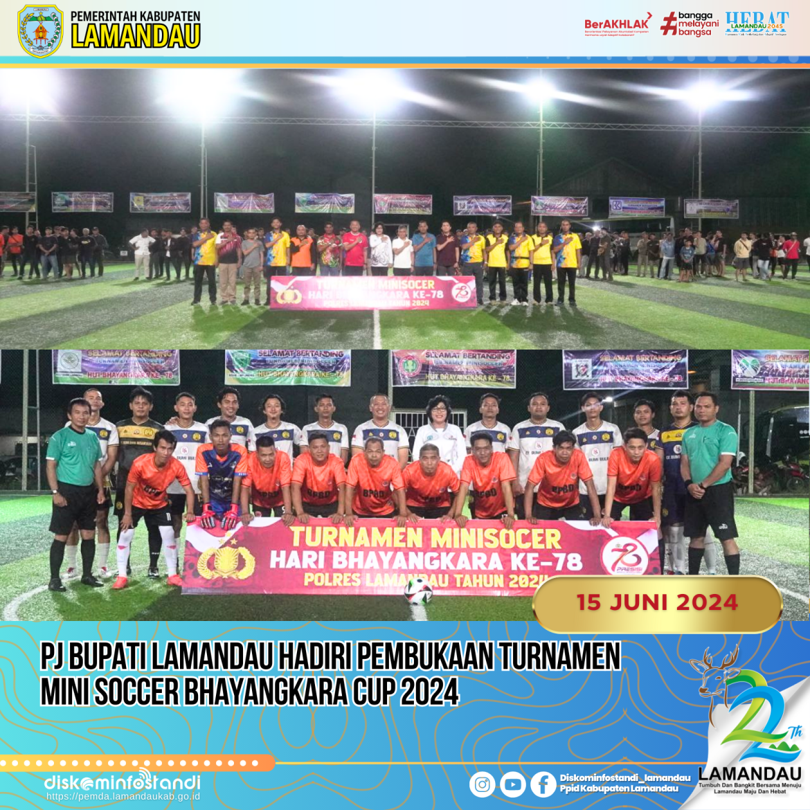 Dikesempatan yang sama, Kapolres Lamandau AKBP Bronto Budiyono mengatakan bahwa turnament mini soccer digelar dalam rangka memeriahkan Hari Bhayangkara ke 78. “Ada sebanyak 31 tim yang mengikuti turnamen ini yang terbagi dalam 8 grup yang nanti akan diambil setiap grup 2 tim untuk melaju ke babak 16 besar. Rencananya pemenang nanti akan kita kirim ke Palangka Raya untuk mengikuti turnamen mini soccer Kapolda CUP”, kata Kapolres. (Diskominfostandi)