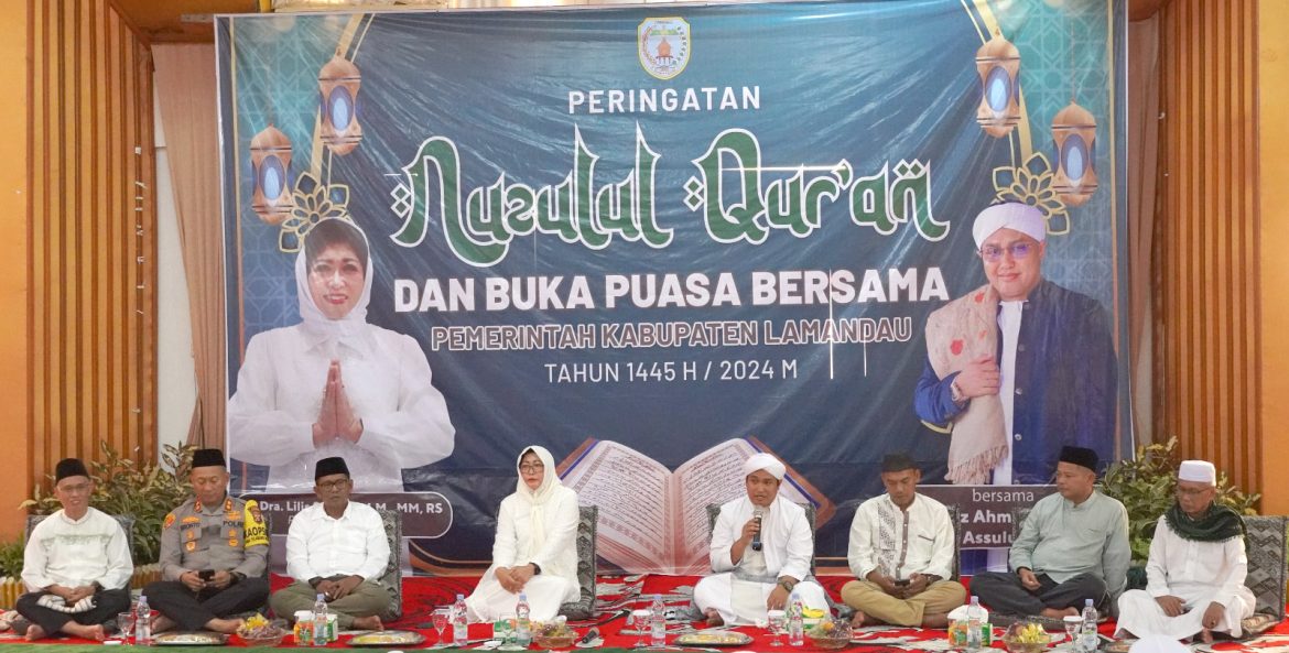 Nanga Bulik – Pj Bupati Lamandau Lilis Suriani menghadiri Peringatan Nuzulul Qur’an dan Buka Puasa Bersama Pemerintah Kabupaten Lamandau Tahun 1445H, di GPU Lantang Torang, Selasa (2/4).