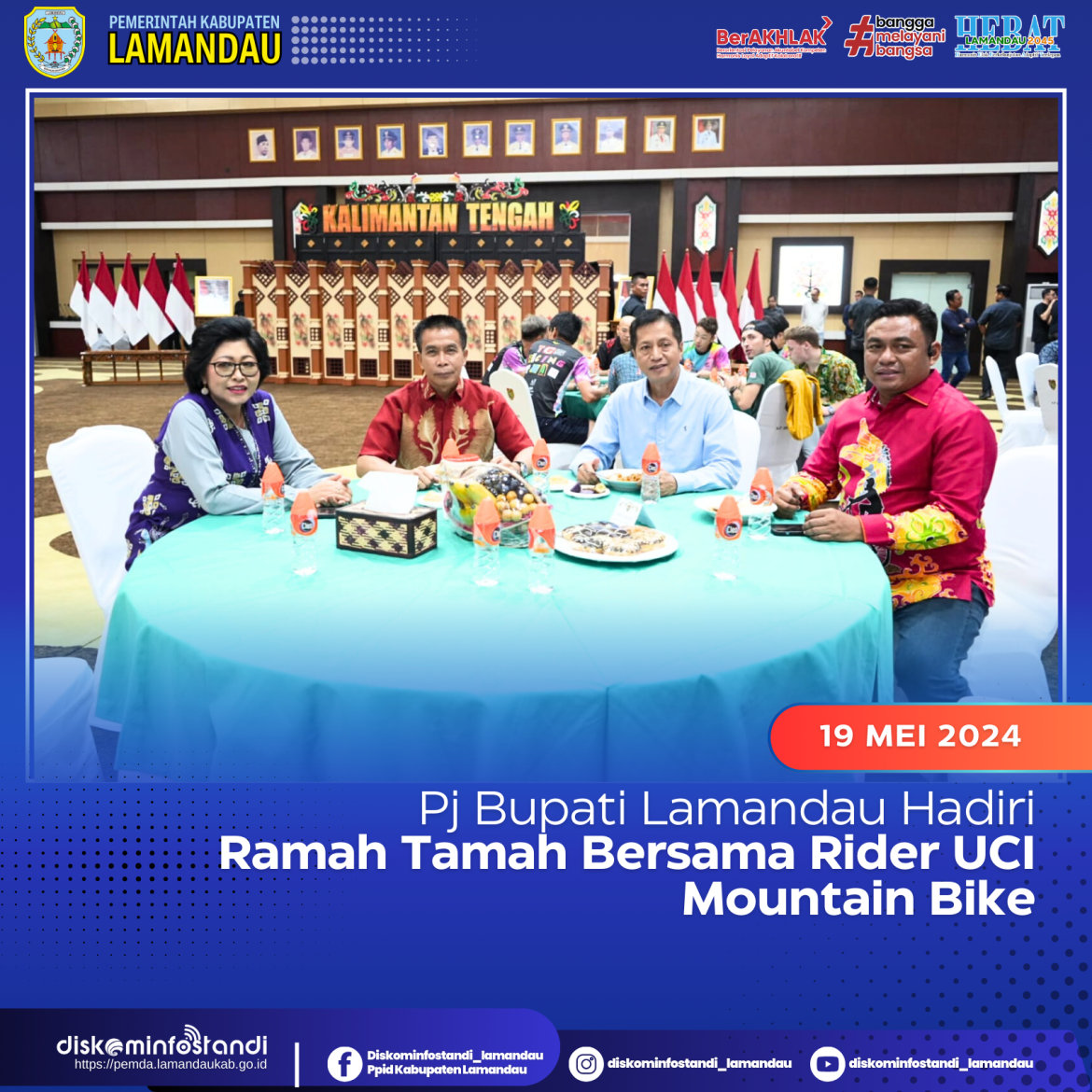 Palangka Raya – Usai menghadiri ajang balap sepeda Union Cycliste Internationale (UCI) Mountain Bike Eliminator Word Cup 2024, Penjabat (Pj) Bupati Lamandau, Lilis Suriani juga menghadiri ramah tamah dan jamuan santap malam bersama para rider UCI Mountain Bike, Minggu malam (19/5/2024).