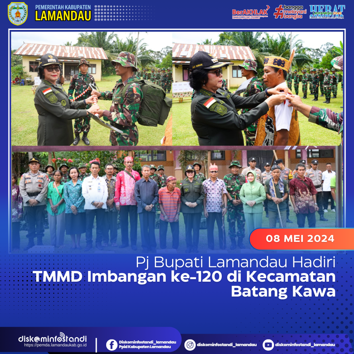 Nanga Bulik – Pj Bupati Lamandau Lilis Suriani menghadiri Kegiatan TNI Manunggal Membangun Desa (TMMD) Imbangan ke-120 Tahun 2024, di lapangan sekolah SMP N SATAP 4 Batang Kawa, desa Benakitan Kecamatan Batang Kawa, Rabu (8/5).