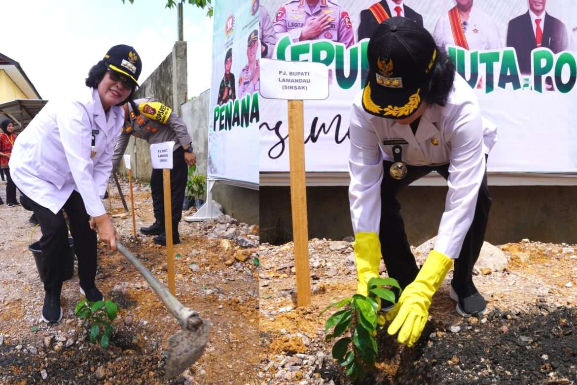 Nanga Bulik – Pj Bupati Lamandau Lilis Suriani menghadiri penanaman Pohon secara simbolis pada acara Penanaman Serentak Sepuluh Ribu Pohon bersama Polri di Polsek Bulik, Rabu (15/11).