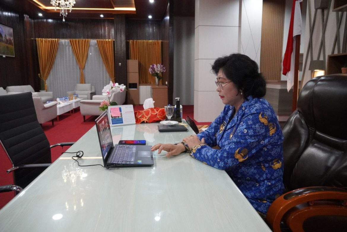 Nanga Bulik – Penjabat (Pj) Bupati Lamandau, Lilis Suriani mengikuti Video Conference (Vidcon) bersama Kementerian Dalam Negeri (Mendagri) Republik Indonesia, Jum’at (17/11/2023) di ruang kerjanya. Vidcon diikuti oleh Kepala Daerah seluruh Indonesia.