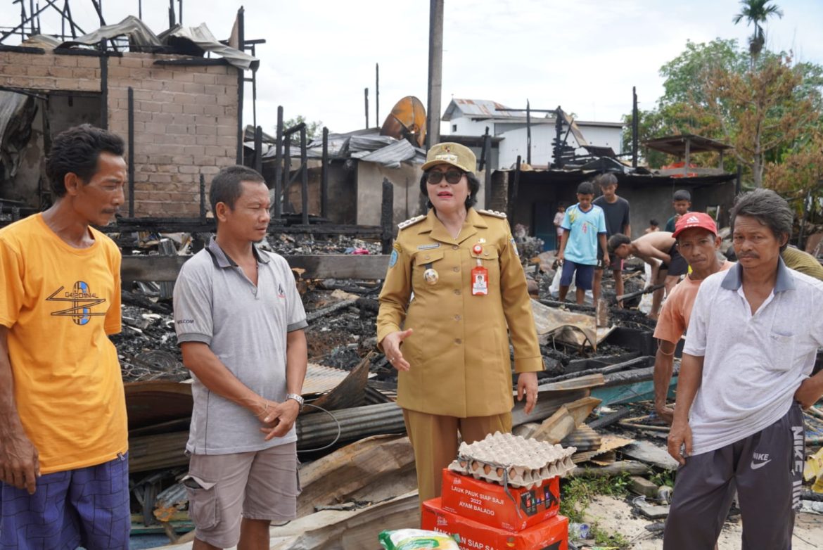 Nanga Bulik – Pj Bupati Lamandau Lilis Suriani didampingi kepala Dinas Sosial dan Kepala Badan Penanggulangan Bencana Daerah Kabupaten Lamandau mengunjungi korban kebakaran yang terjadi pada jumโat (1/12) lalu di RT 8 C Nanga Bulik, yang mengakibatkan 5 rumah hangus dilalap api dan sebanyak 5 kepala keluarga kehilangan tempat tinggalnya.