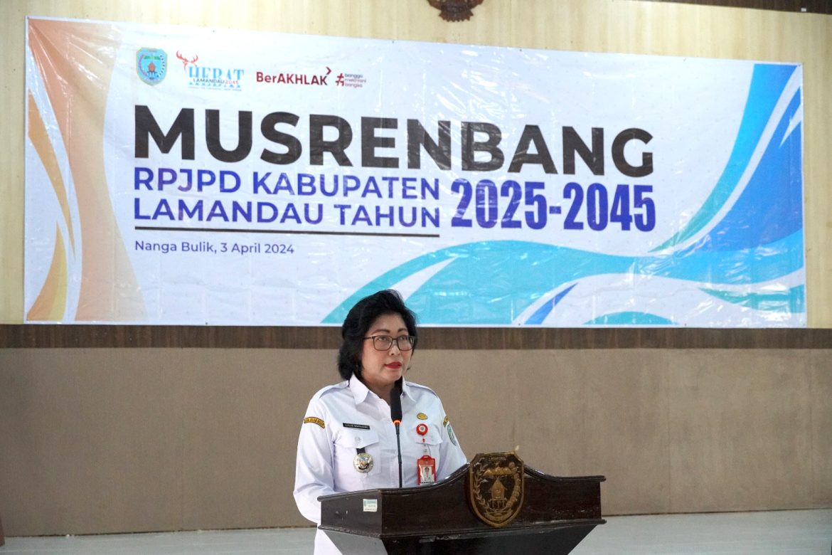 Nanga Bulik – Pj Bupati Lamandau Lilis Suriani membuka Musrenbang Rencana Pembangunan Jangka Panjang Daerah (RPJPD) Kabupaten Lamandau tahun 2025-2045, di Aula Bappedalitbang Kabupaten Lamandau, Rabu (3/4).
