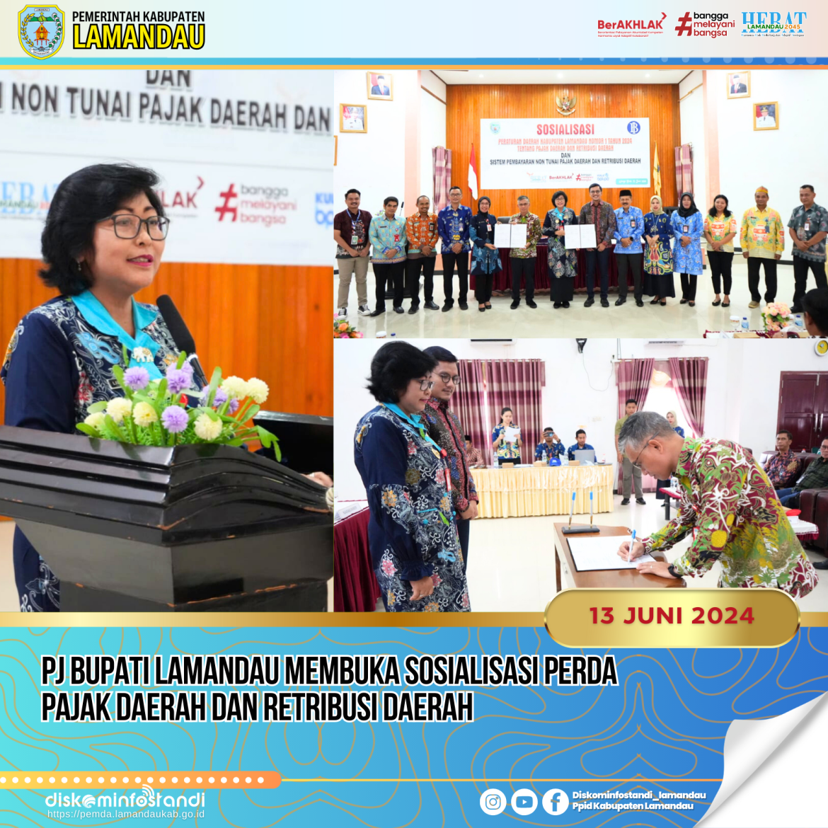 Nanga Bulik – Pj Bupati Lamandau Lilis Suriani membuka kegiatan Sosialisasi Peraturan Daerah Kabupaten Lamandau nomor 1 tahun 2024 tentang Pajak Daerah dan Retribusi Daerah dan Sistem Pembayaran Non Tunai Pajak Daerah dan Retribusi Daerah, di aula BPKPD Kabupaten Lamandau, kamis (13/6).