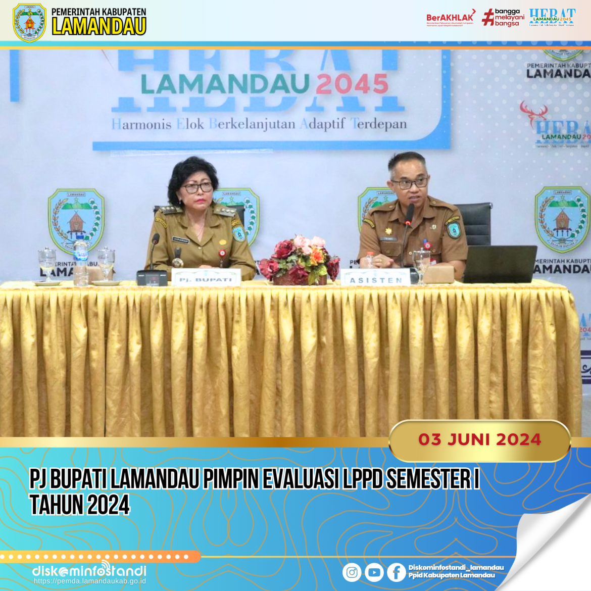 Nanga Bulik – Pj Bupati Lamandau Lilis Suriani pimpin evaluasi Laporan Penyelenggaraan Pemerintah Daerah (LPPD), Laporan Keterangan Pertanggungjawaban, dan Ringkasan Laporan Penyelenggaraan Pemerintah Daerah (RLPPD), tahun 2024 semester 1, di aula Setda Lamandau, Senin (3/6).