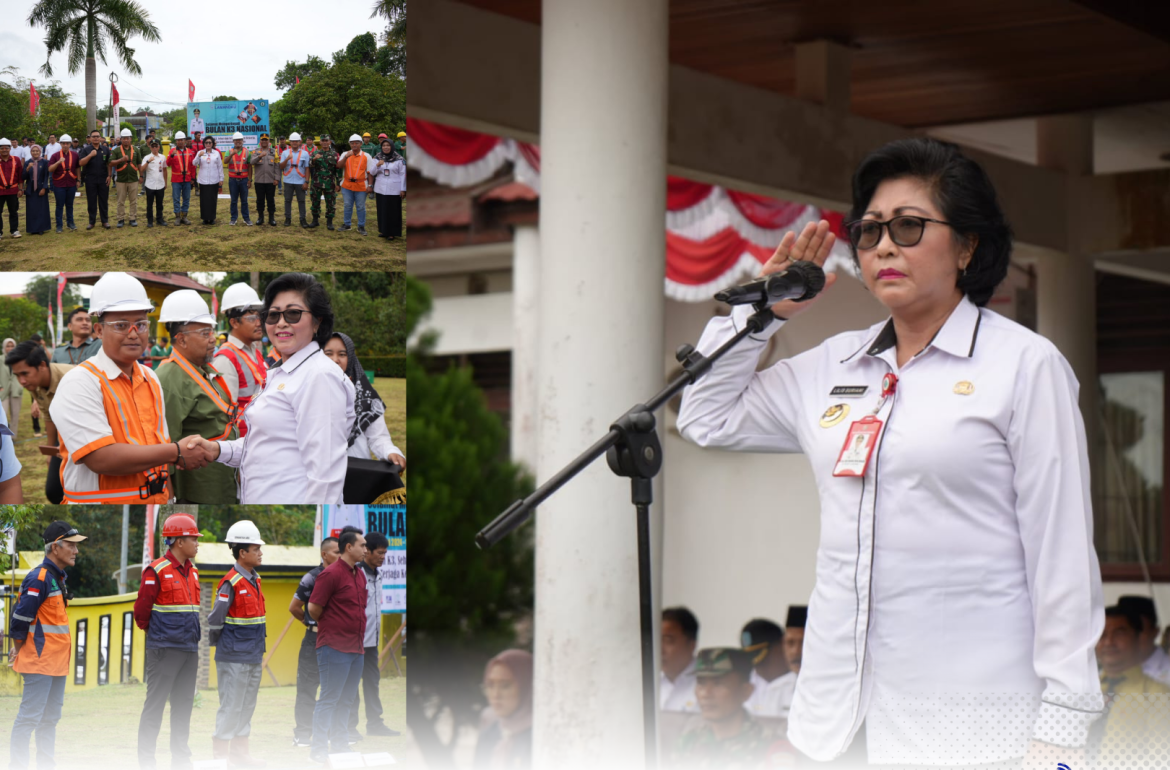 Nanga Bulik – Pj Bupati Lamandau Lilis Suriani pimpin upacara memperingati bulan Kesehatan dan Keselamatan Kerja (K3) Nasional di Kabupaten Lamandau tahun 2024, di halaman kantor Disnakertrans Kabupaten Lamandau, Rabu (31/1).