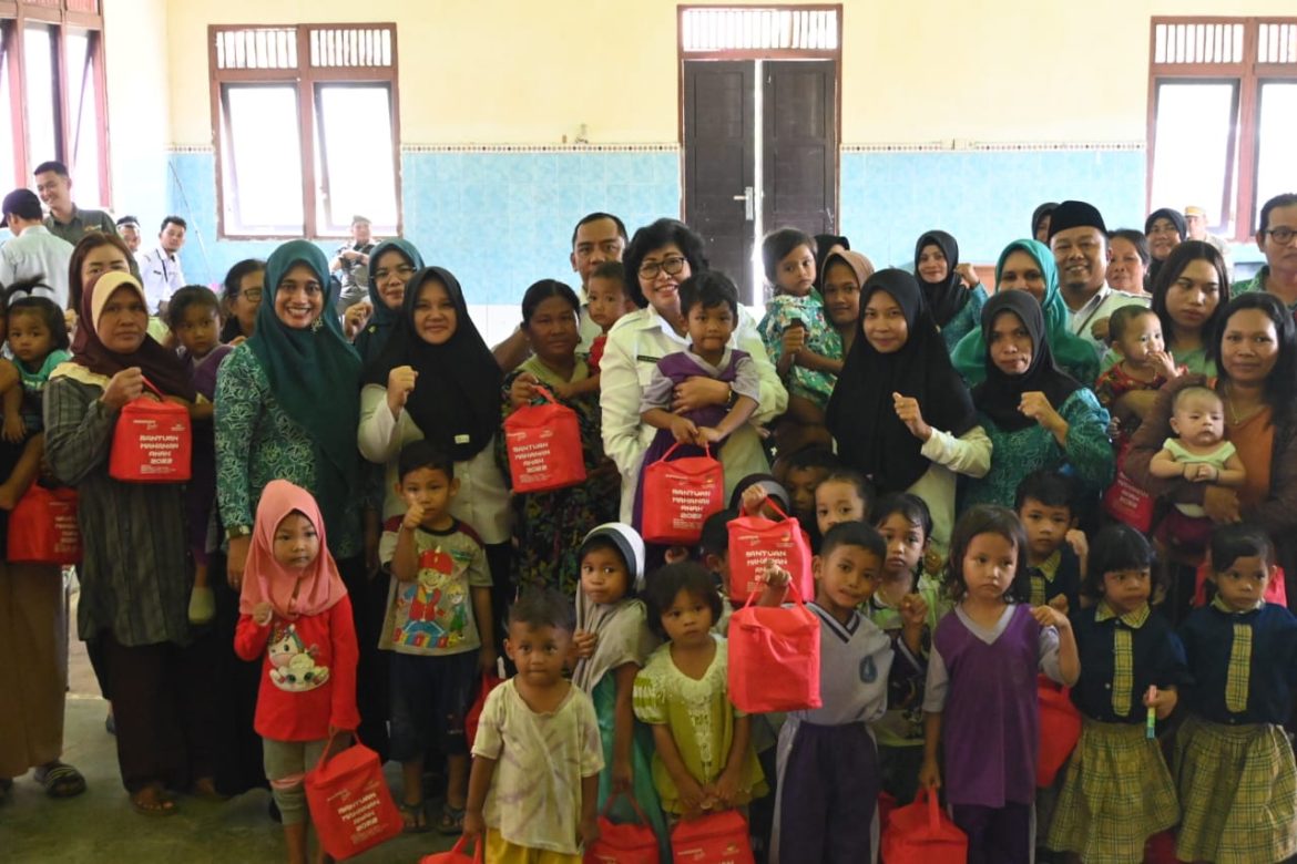 Bantuan percepatan penurunan angka stunting yang diserahkan ini berupa paket yang berisi telur, beras, kacang hijau dan bantuan makanan untuk anak.