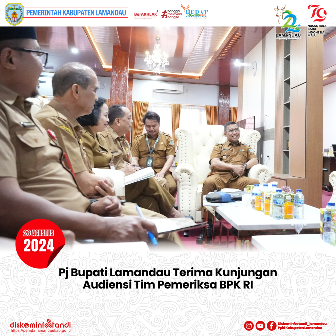 Mengawali pemeriksaan tersebut, Pj Bupati Lamandau Said Salim, terima kunjungan audiensi Tim Pemeriksa BPK RI, di ruang kerjanya, Senin (26/8).
