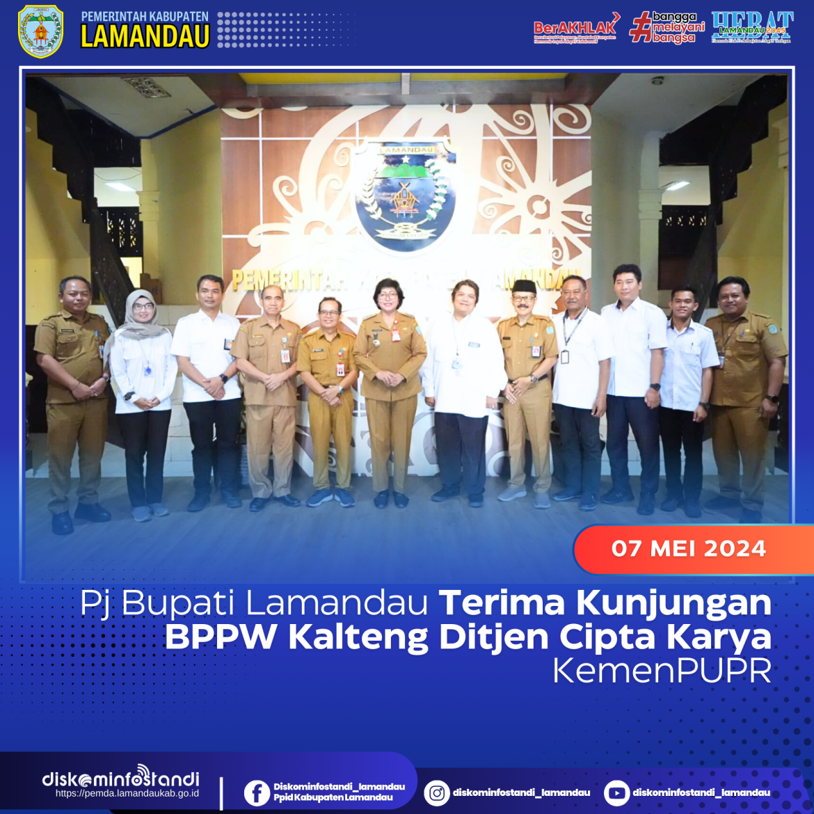 Nanga Bulik – Pj Bupati Lamandau Lilis Suriani terima kunjungan Kasi Pelayanan Wilayah 2 Lourent Napitupulu dan Tim dari Balai Prasarana Permukiman Wilayah (BPPW) Kalimantan Tengah Ditjen Cipta Karya KemenPUPR, di ruang kerjanya, Selasa (7/5).