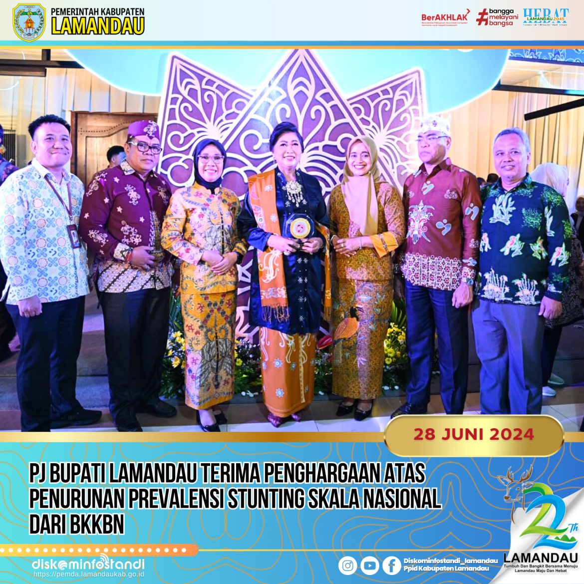 Penghargaan bergengsi ini diberikan sebagai pengakuan atas upaya nyata dan komitmen yang telah dilakukan dalam menurunkan angka prevalensi stunting di wilayah Kabupaten Lamandau.