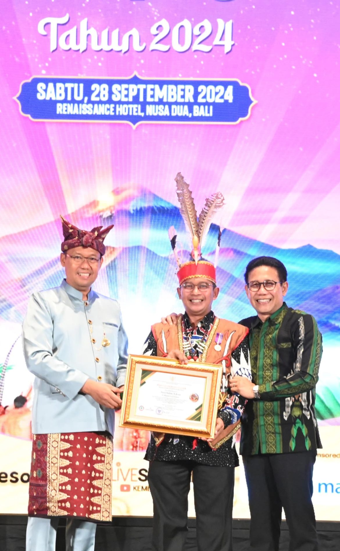 Penghargaan ini diterima Pj Bupati dalam ajang Malam Apresiasi Lomba Desa Wisata Nusantara, Penggerak Swadaya Masyarakat dan Tenaga Pendamping Profesional Tahun 2024, yang bertempat di Renaissance Bali Nusa Dua Resort Kawasan Pariwisata Lot SW 4-5 Nusa Dua, Badung, Sabtu (28/9/2024)