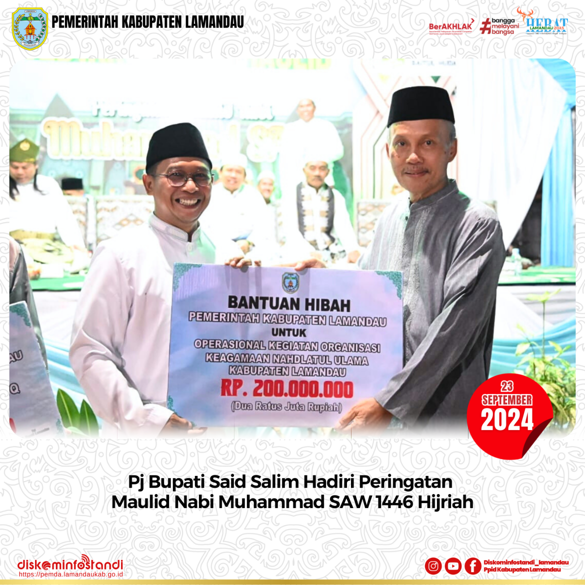 Selain itu, Lanjut Pj Bupati, Peringatan ini juga untuk menguatkan tali silaturahmi dan kebersamaan bagi masyarakat di Kabupaten Lamandau. Dalam kesempatan tersebut, Pj Bupati Lamandau juga menyerahkan hadiah bagi pemenang lomba maulid dan menyerahkan bantuan hibah keagamaan (Diskominfostandi)