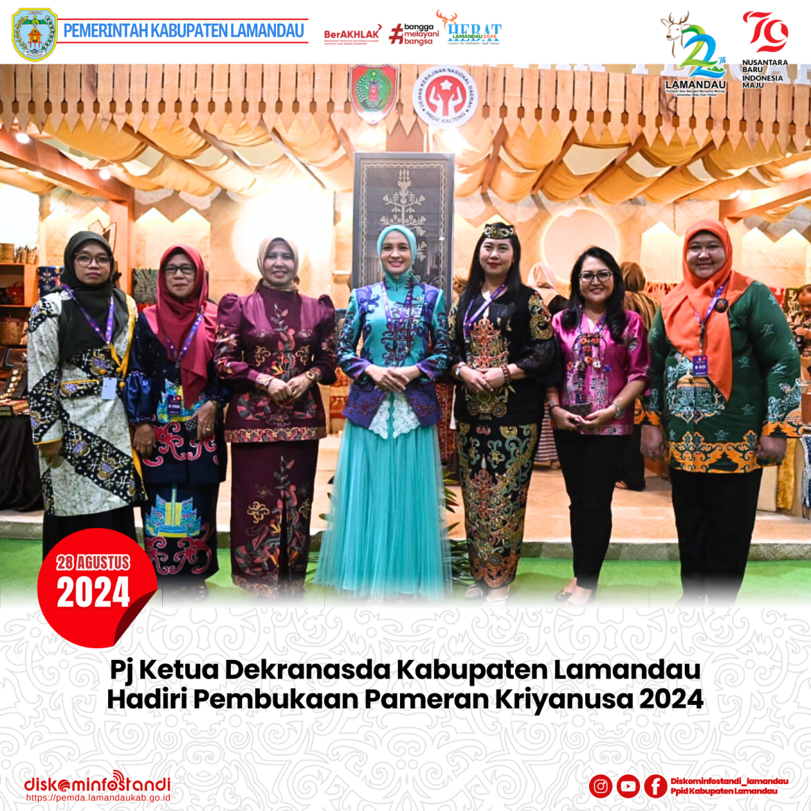 Jakarta – Penjabat (Pj) Ketua Dekranasda Kabupaten Lamandau Febby Surtriani menghadiri acara pembukaan Pameran Kriyanusa 2024, yang digelar oleh Dewan Kerajinan Nasional (DEKRANAS), di Jakarta Convention Center (JCC) Senayan, Jakarta, Rabu (28/8/2024).