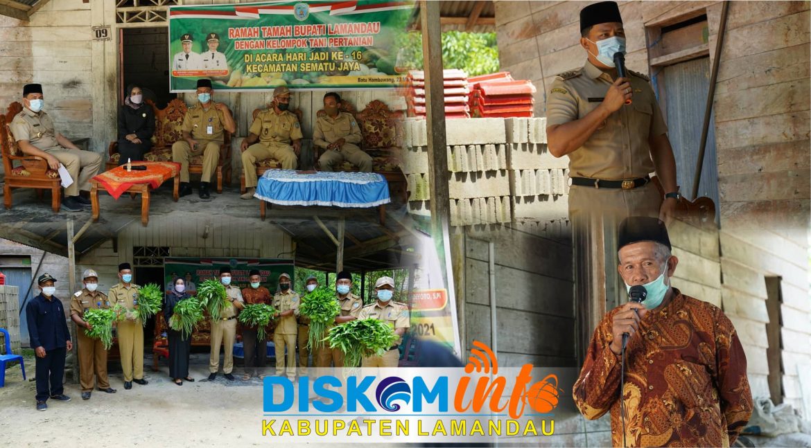 Lamandau – Masih dalam rangkian kegiatan HUT Kecamatan Sematu Jaya, Bupati Lamandau Hendra Lesmana melanjutkan kunjungan kerjanya di desa Batu Hambawang dengan agenda ramah tamah bersama kelompok tani (Poktan) pertanian di salah satu rumah warga desa Batu Hambawang, selasa (23/3).