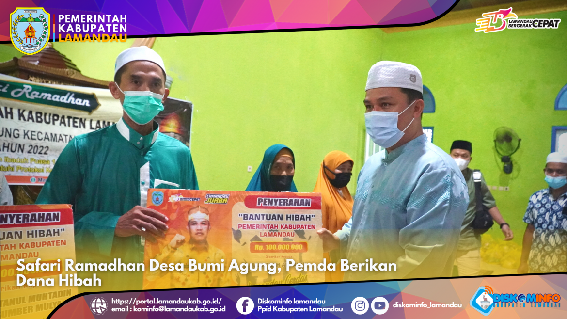 Usai sambutan diserahkan sejumlah bingkisan ramadhan 20 paket sembako, 1 buah mimbar dan diserahkan dana hibah dari Pemerintah Daerah untuk Madrasah Al-Falah sebesar 100 juta rupiah dan Bustanul Muhtadin di Desa Sumber Mulya sebesar 100 juta rupiah.