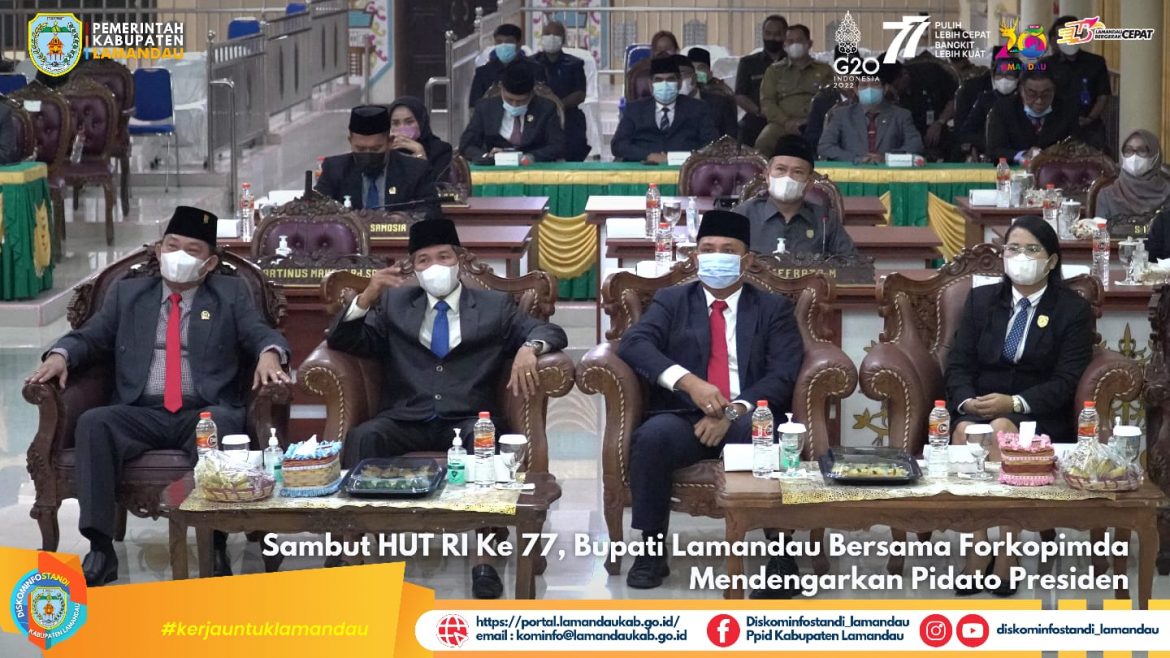 Sambut HUT RI Ke-77, Bupati Lamandau Bersama Forkopimda Mendengarkan Pidato Presiden