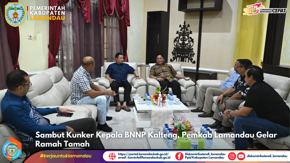 Lamandau Bergerak Cepat (LBC) – Pemerintah Kabupaten (Pemkab) Lamandau menggelar acara ramah tamah menyambut kunjungan kerja (Kunker) Kepala Badan Narkotika Nasional Provinsi (BNNP) Kalimantan Tengah, Brigjen Pol. Drs. Sumirat Dwiyanto, M.Si, Rabu (8/6) di rumah Jabatan Bupati Lamandau.